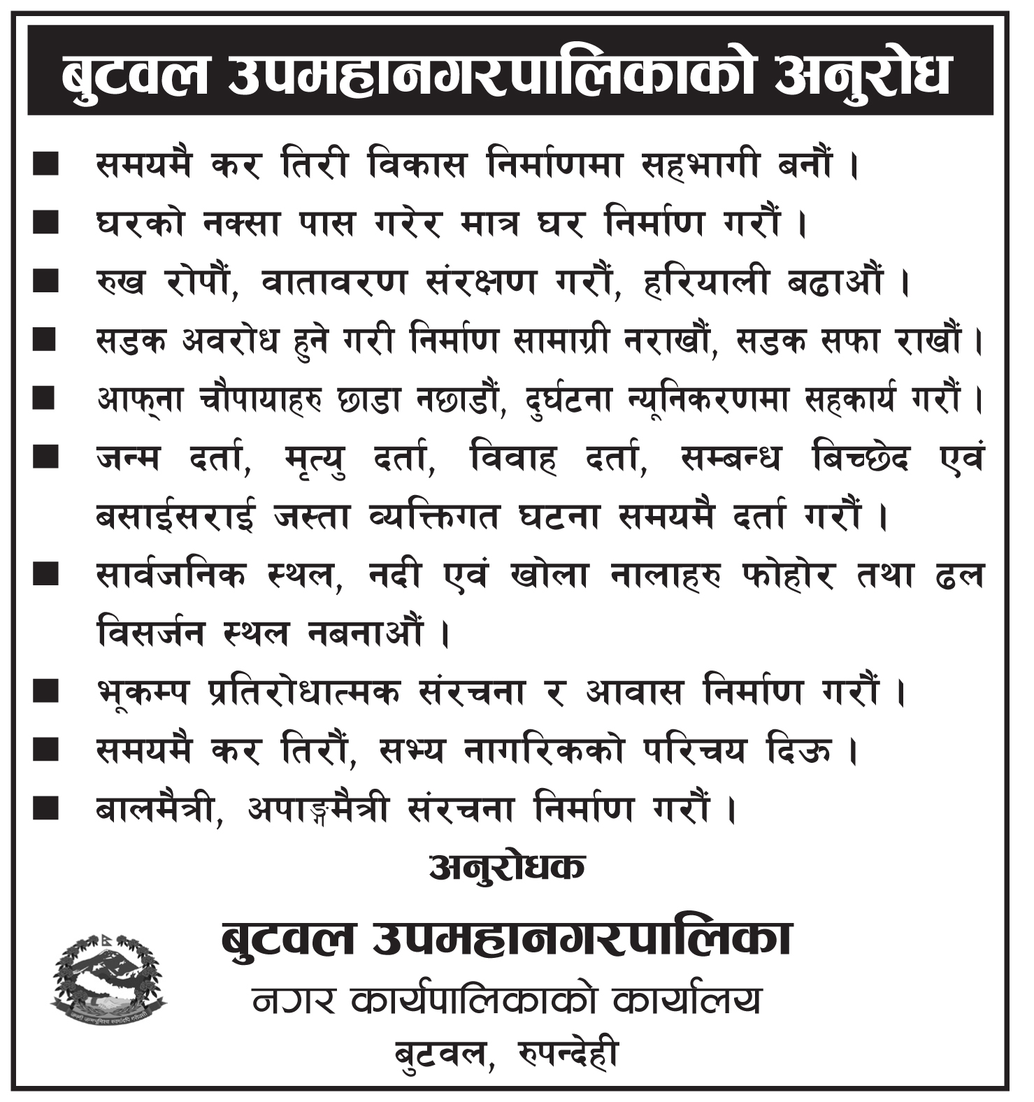 butwal sub-metropolis request